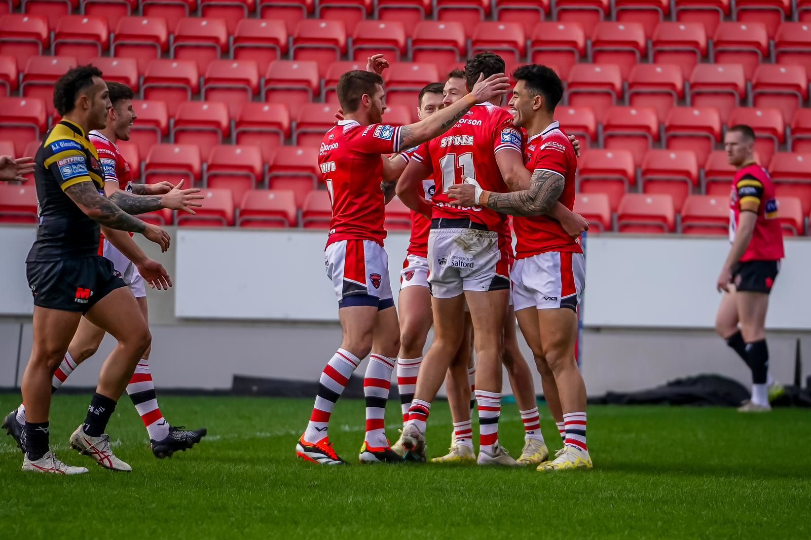 Salford line-up: Ryan Brierley, Ethan Ryan, Nene Macdonald, Tim Lafai, Deon Cross, Jayden Nikorima, Marc Sneyd, Brad Singleton, Joe Shorrocks, Joe Bullock, Sam Stone, Kallum Watkins, Ollie Partington.